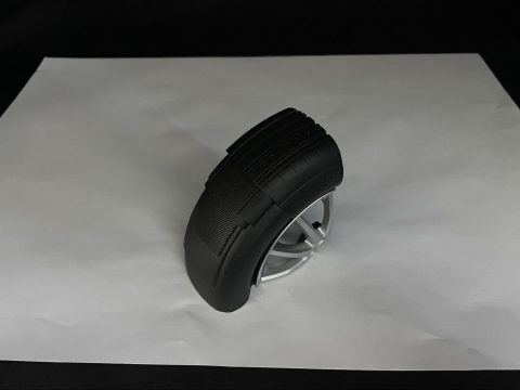 展示会ディスプレイ用のサンプルを製作。 ラフデザインからの打合せを重ねて、3Dモデリングから製作しました。 ホイール部分は樹脂製+アルミ調塗装仕上りです。
